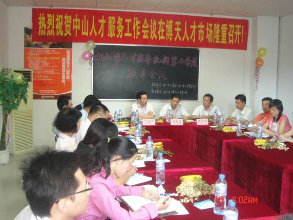 7月19日,市人事局、人才管理中心领导以及中山市人才服务机构各负责人到博天人才市场参加由市人事局、人才管理中心主办、博天人才市场承办的主题为“交流、规范、创新、发展”的“中山市人才服务机构第二季度联席会议”。