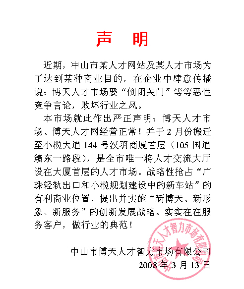 博天人才市场声明